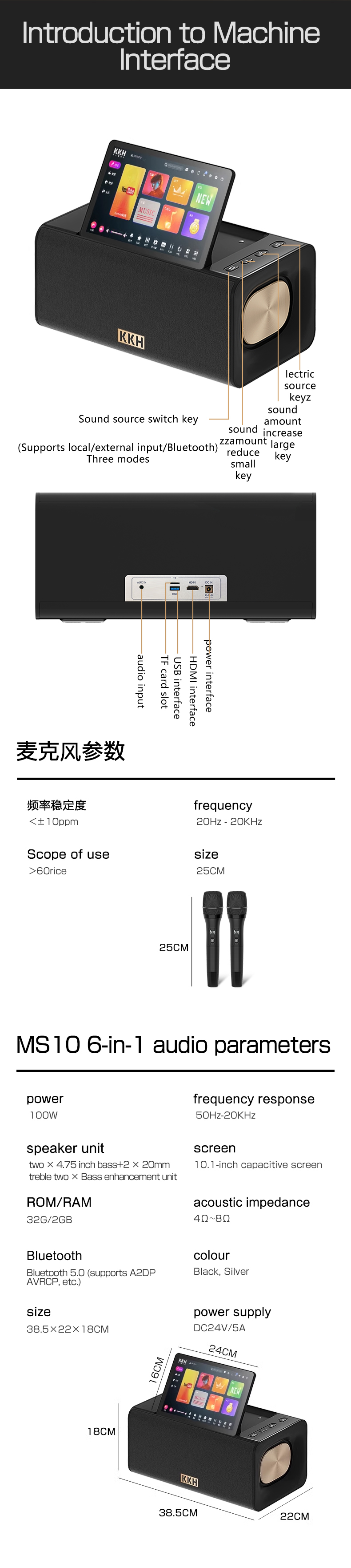 KKH MS10 upgraded version of the family karaoke audio KTV set full set of home living room song ordering Bluetooth speaker